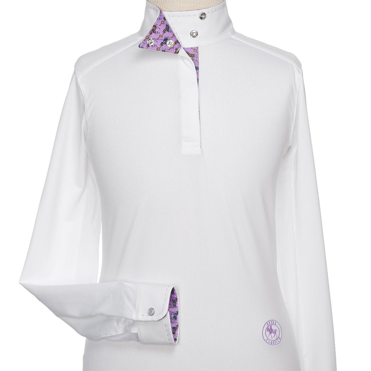 It all started 40 years ago in 1985 when our founder, Cathy Sacher, saw a rider drop her choker in a mud puddle at the horse show in Lake Placid. 😱 That moment sparked a revolution in show shirt design.