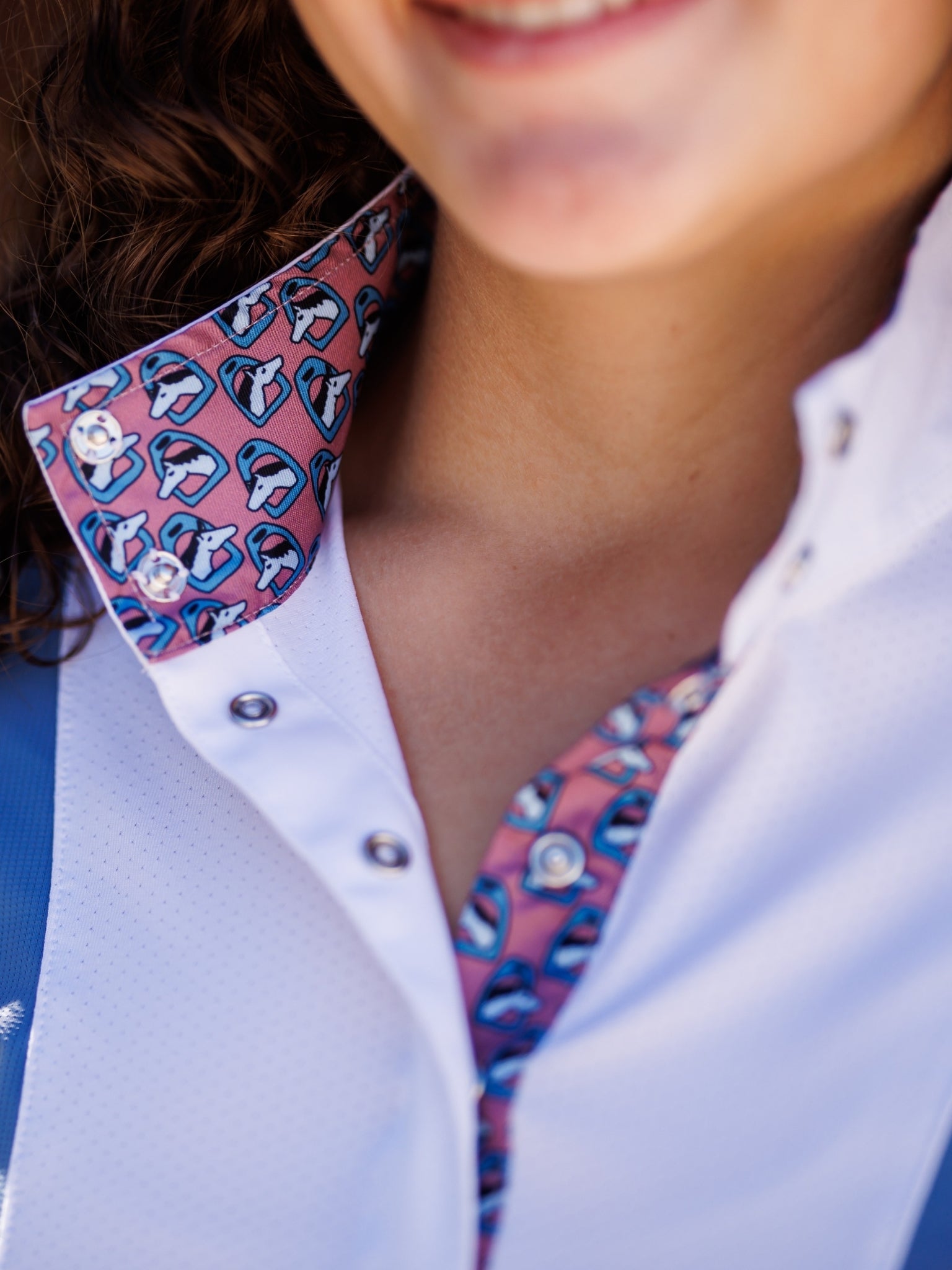 Ladies "Luna II" Blue Stirrup Talk Long Sleeve Performance Show Shirt