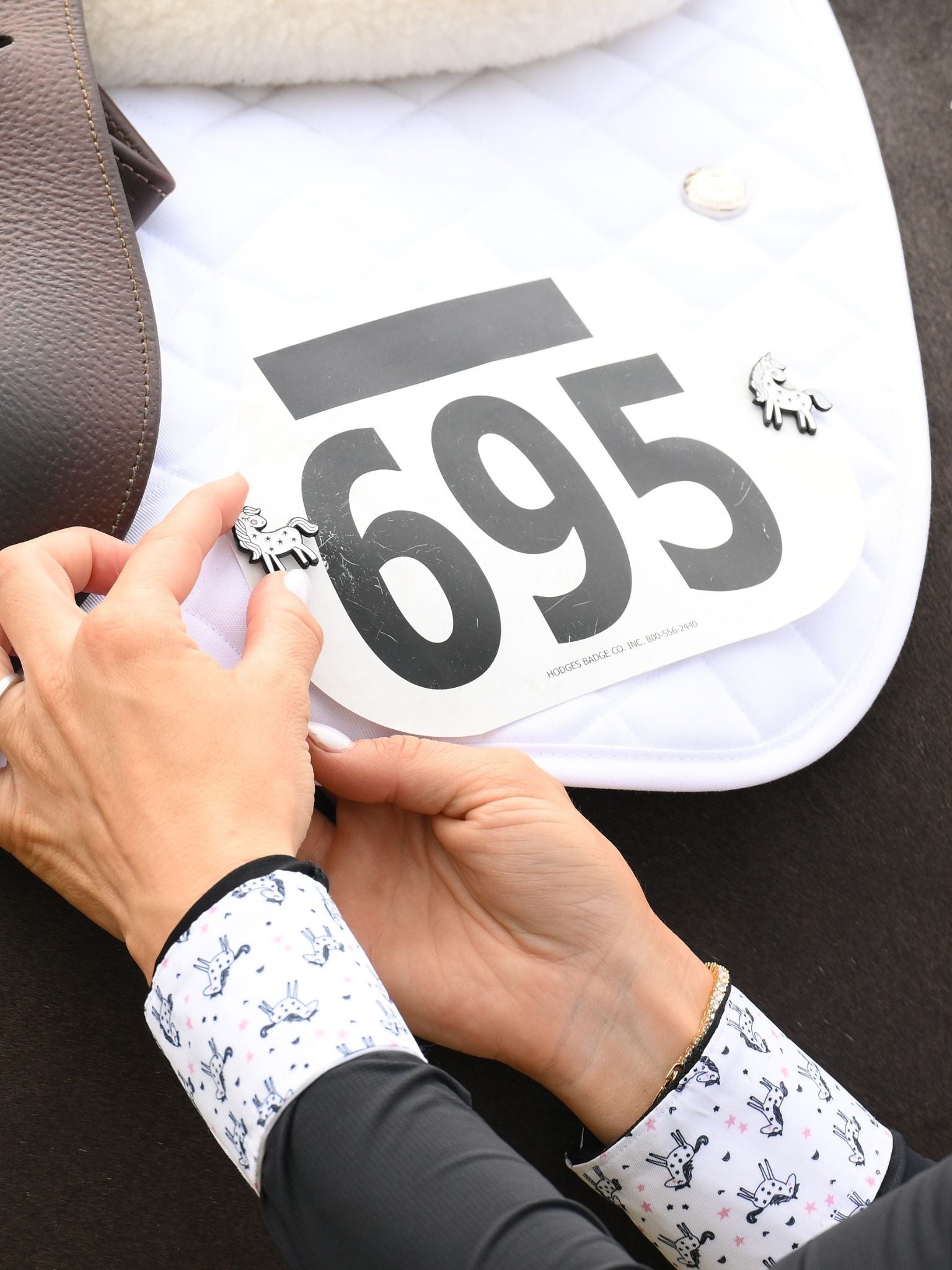 These enamel pins are designed to secure numbers to your saddle pad or decorate your bonnet. Pins are backed with a locking clasp that are smooth against your horse's skin.